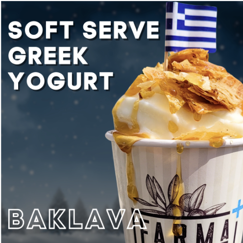 GYRO PITA (choice of Chicken or Pork) + SOFT SERVED GREEK YOGURT (choice of Sour Cherry or Baklava or Thyme Honey) + BOTTLE OF WATER 500ml